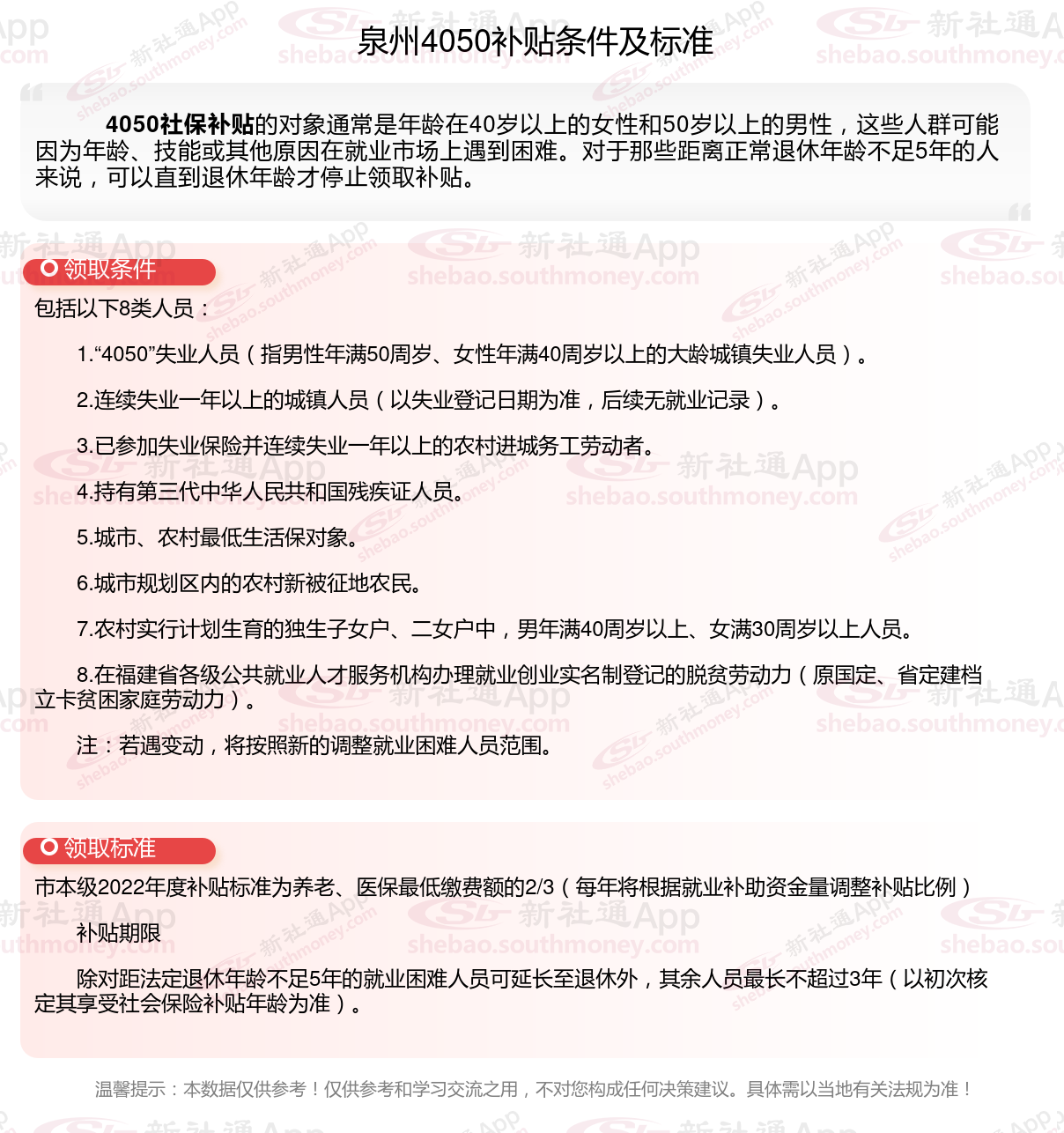 2025泉州4050补贴主要针对的是年龄在40岁以上的女性和50岁以上的男性,这些人群通常因为年龄较大而面临就业困难。