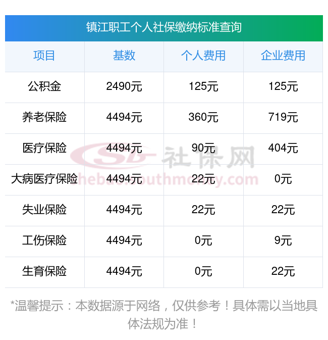 在职人员五险一个月交多少钱 公司加个人是多少?下表是2024-2025年镇江社保费用明细参考,新社通app-社保缴费查询工具提供的最新数据如下: