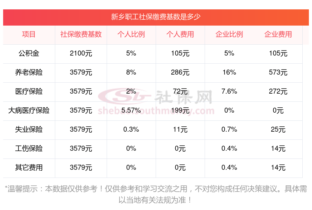 2025年新乡社保缴费多少钱?下表是2024-2025年新乡社保费用明细参考,新社通app-社保缴费查询工具提供的最新数据如下: