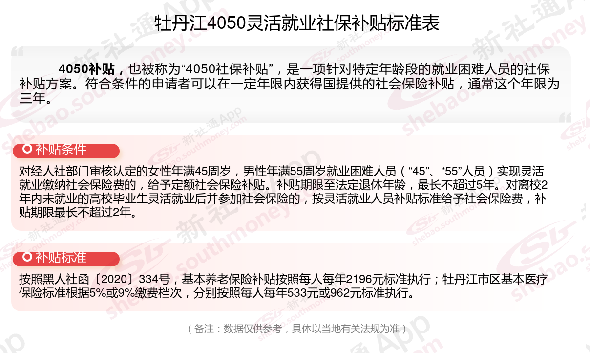 二、牡丹江4050社保补贴标准及条件2025年最新消息