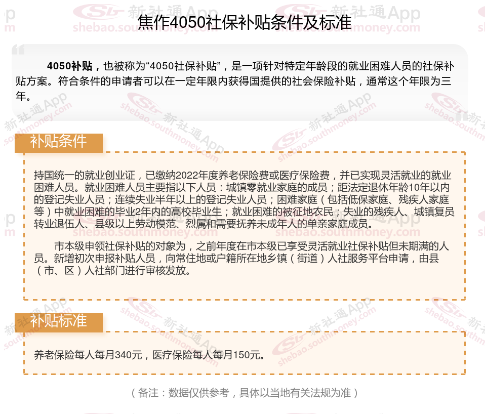 二、焦作4050社保补贴标准及条件2025年,最新如下