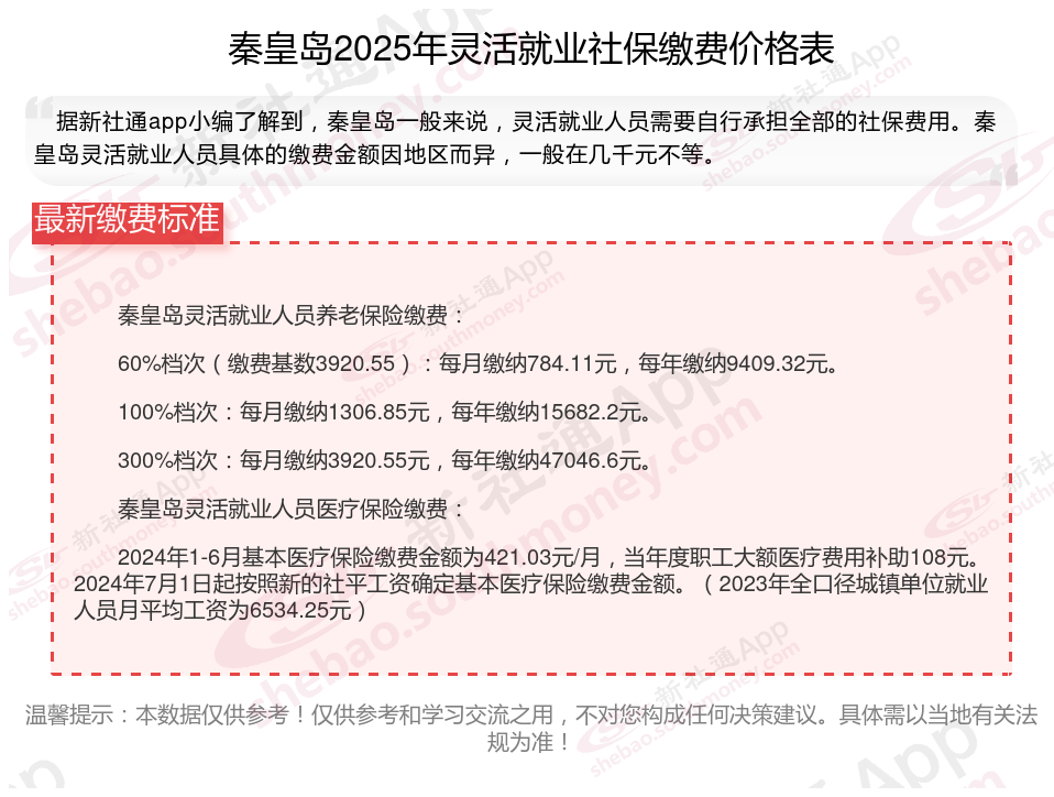 随着经济的发展和社会的进步,灵活就业人员越来越多,但是很多人不知道如何缴纳社保。本文将介绍2025年秦皇岛灵活就业人员社保缴费基数及如何缴纳社保,能领取多少钱,帮助大家更好地了解灵活就业社保,随着新社通APP小编一起了解秦皇岛灵活就业社保缴费最新资讯吧。