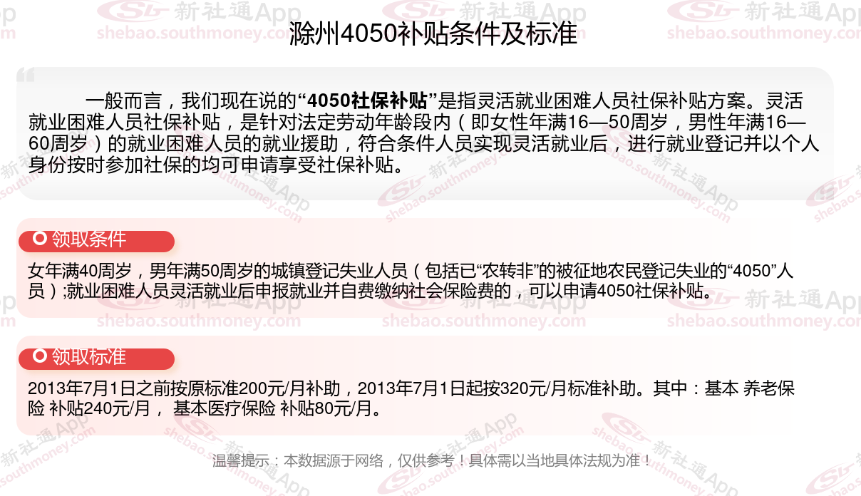 一、2025年滁州灵活就业4050社保补贴标准及条件是什么