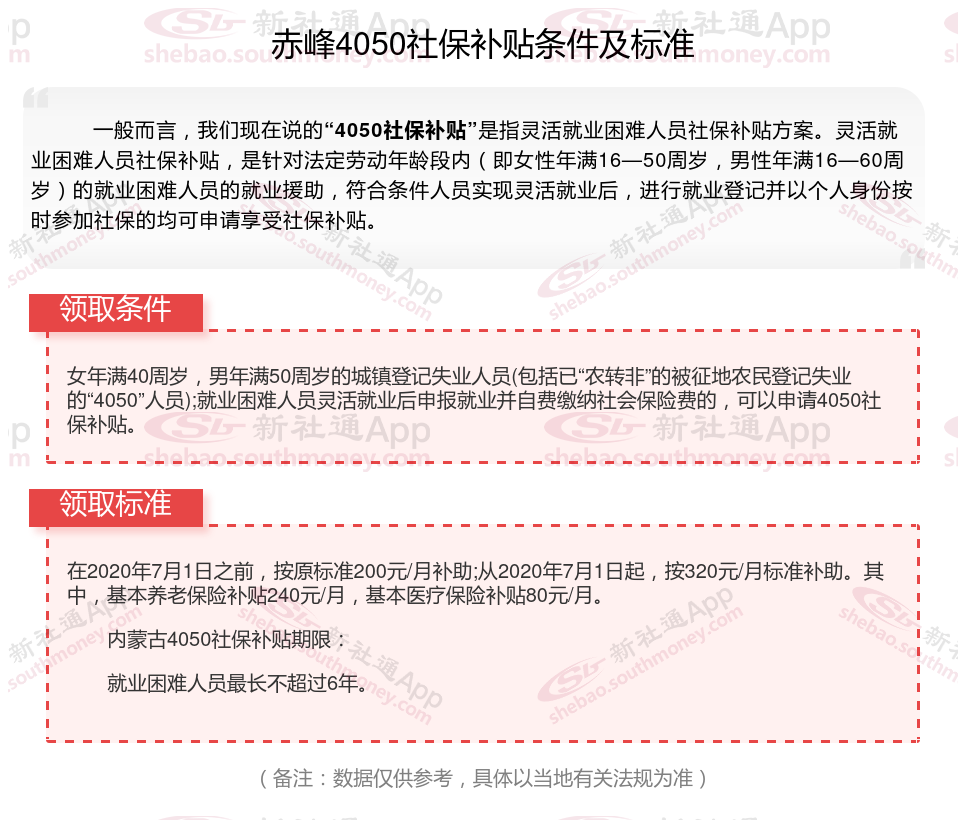 一、赤峰4050社保补贴标准及条件2025年最新消息