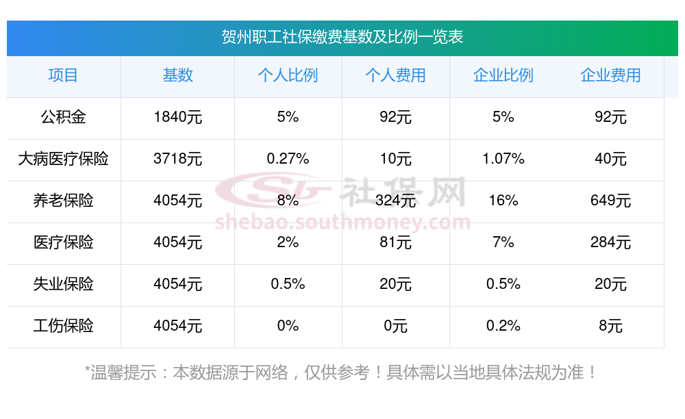 2025社保交多少钱?下表是2025年贺州社保费用明细参考,新社通app-社保缴费查询工具提供的最新数据如下: