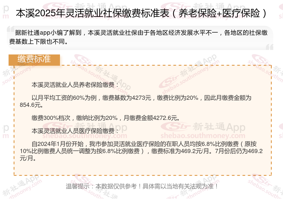 据新社通app数据显示,本溪灵活就业养老保险缴费基数2024-2025年最新标准如下: