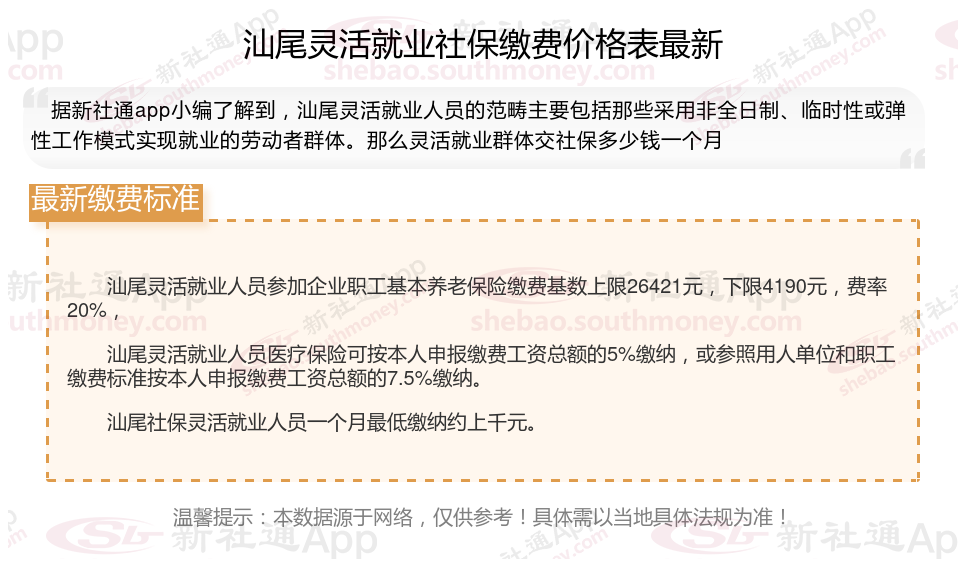 汕尾灵活就业自己交社保一个月要交多少钱?灵活就业人员社保缴费按什么档次缴纳好,怎么选择划算?根据新社通app-社保缴费查询工具提供的最新数据如下: