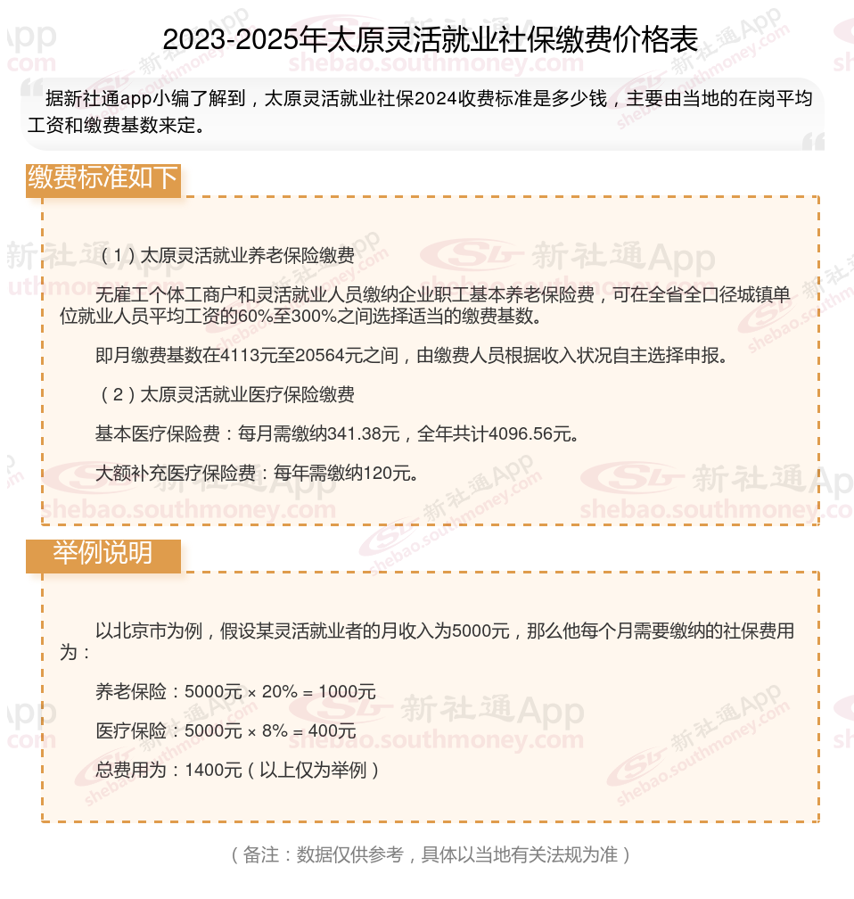 据新社通app数据显示,太原企业灵活就业养老保险的缴费基数为:4113元。