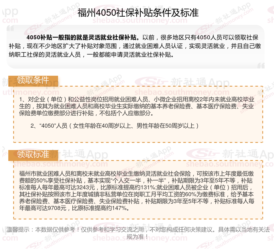 一、2025年福州4050社保补贴标准是怎么样的?福州4050一年可拿多少钱?