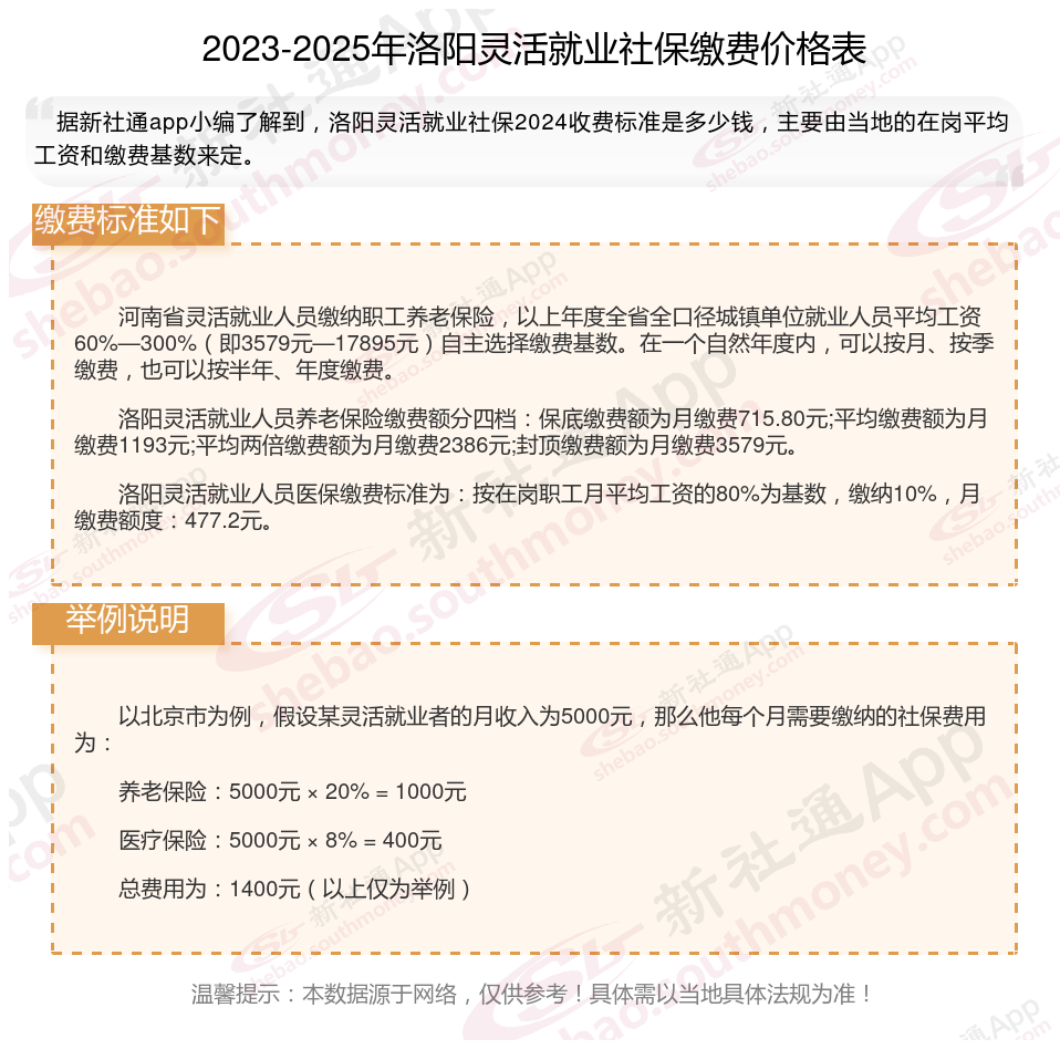 二、洛阳2024年灵活就业社保缴费基数、比例最新消息