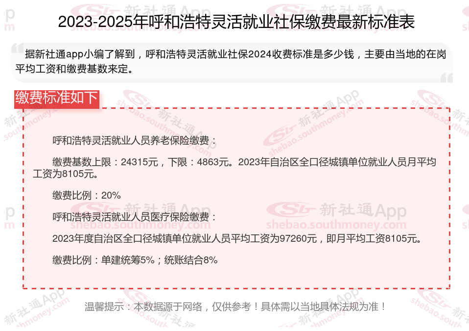 以上就是新社通小编带来呼和浩特灵活就业社保缴费知识,内容供参考,希望对你有帮助,欢迎关注/下载新社通APP解锁更多社保专业资讯。