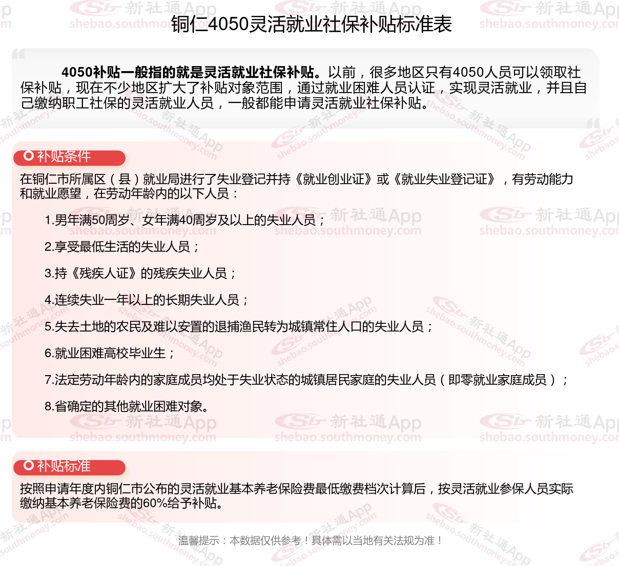 以上就是铜仁4050灵活就业社保补贴的相关内容,欢迎关注新社通/下载新社通APP了解更多五险一金专业资讯。