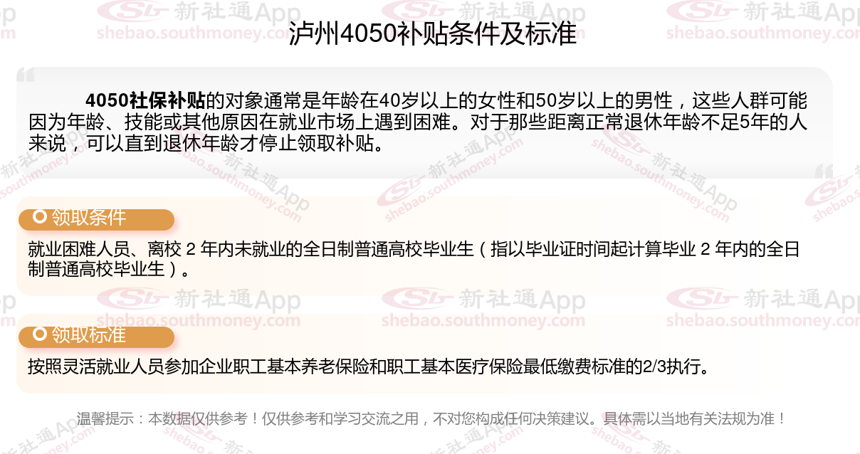 以上就是泸州4050灵活就业困难人员社保补贴的相关内容,欢迎关注新社通/下载新社通APP了解更多五险一金专业资讯。