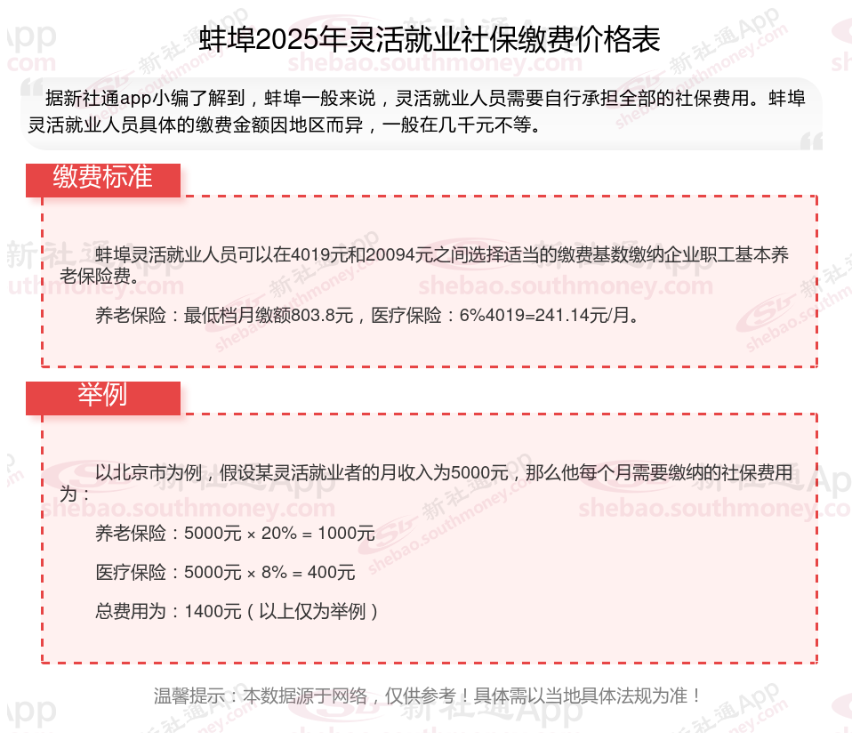 那么,蚌埠自由职业者社保一个月需要交多少钱?根据新社通app-社保缴费查询工具提供的2025社保缴费标准详情数据: