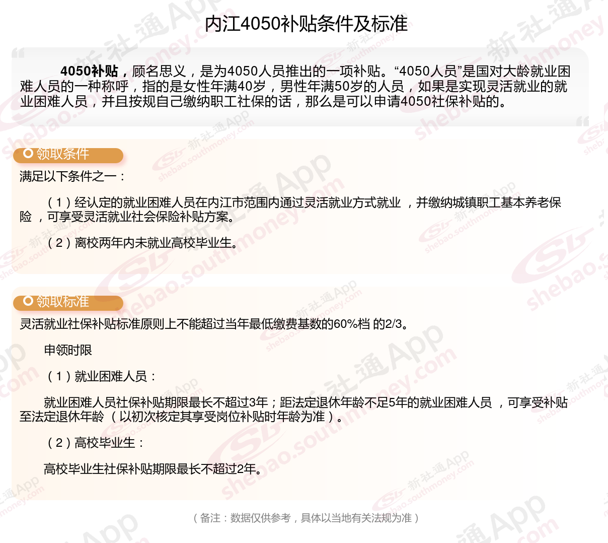 一、2025年内江4050社保补贴标准,最新领取条件来了