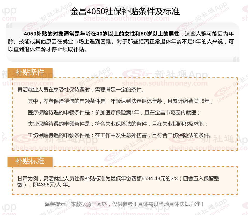 二、金昌4050社保补贴多少钱一个月,金昌4050社保补贴新规2025年最新标准