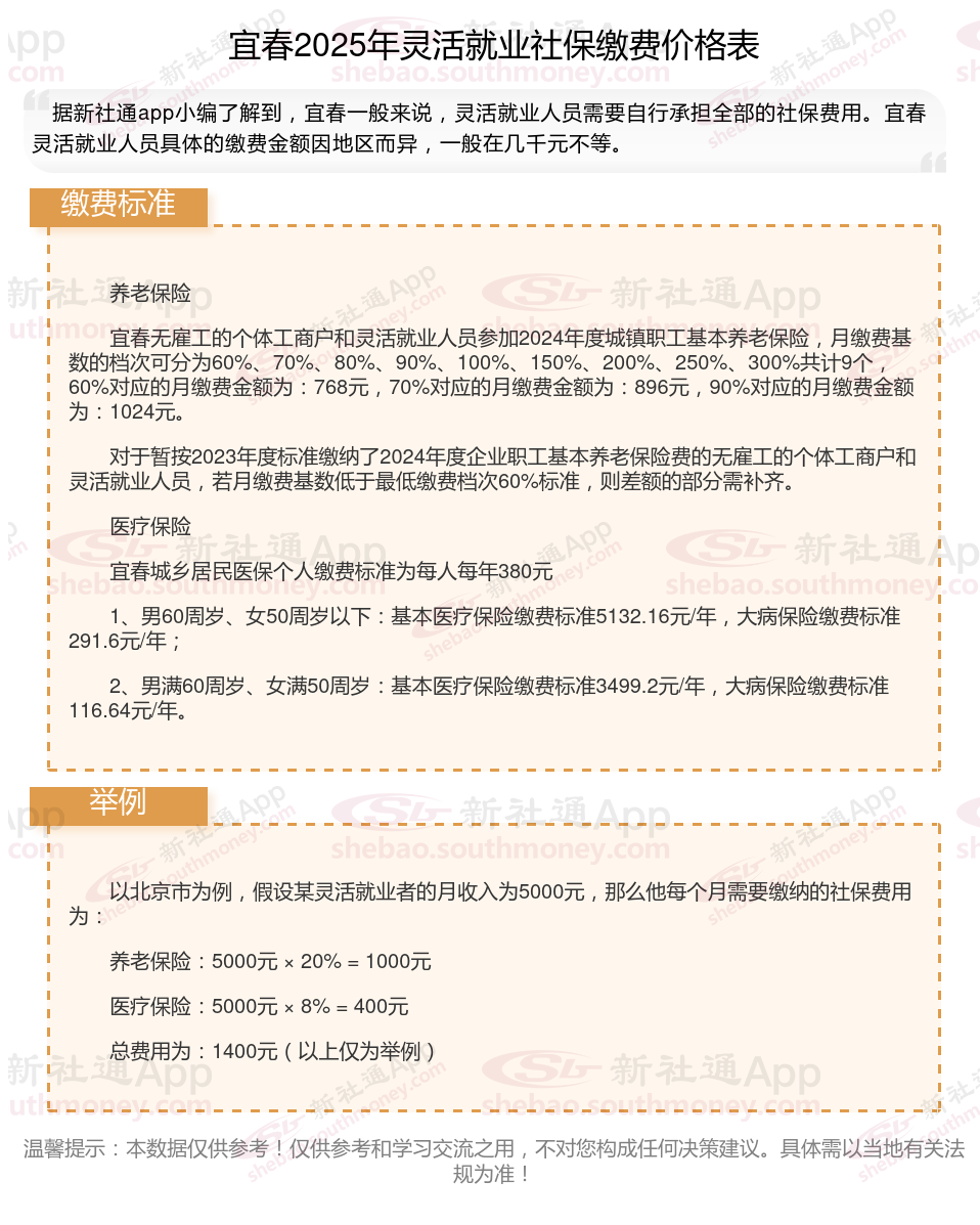 据新社通app数据显示,宜春灵活就业人员养老缴费基数2024-2025年最新标准如下: