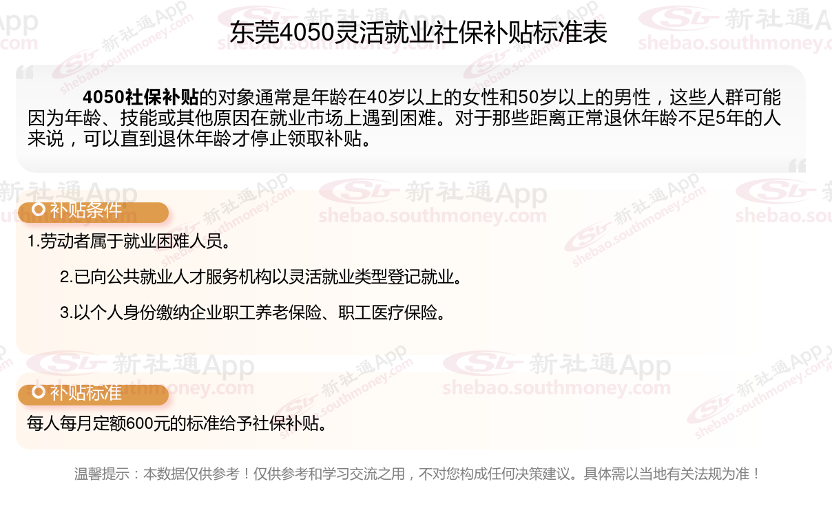 2025东莞4050补贴主要针对的是年龄在40岁以上的女性和50岁以上的男性,这些人群通常因为年龄较大而面临就业困难。