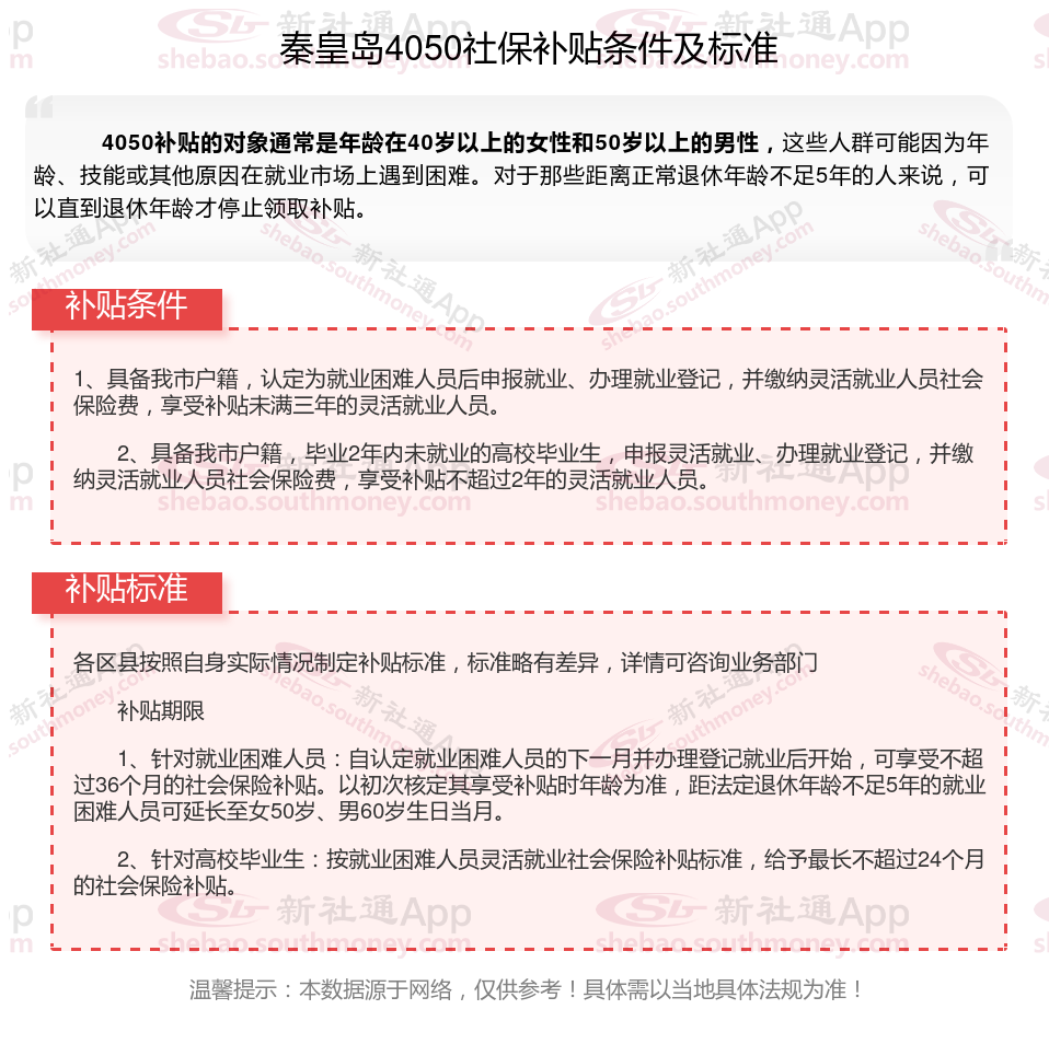 一、秦皇岛4050社保补贴标准是什么?附条件