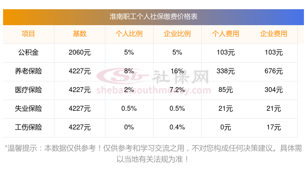 淮南五险一金交多少钱一个月?和社保网小编一起来看看2024-2025年淮南社保费用明细参考,新社通app-社保缴费查询工具提供的最新数据如下: