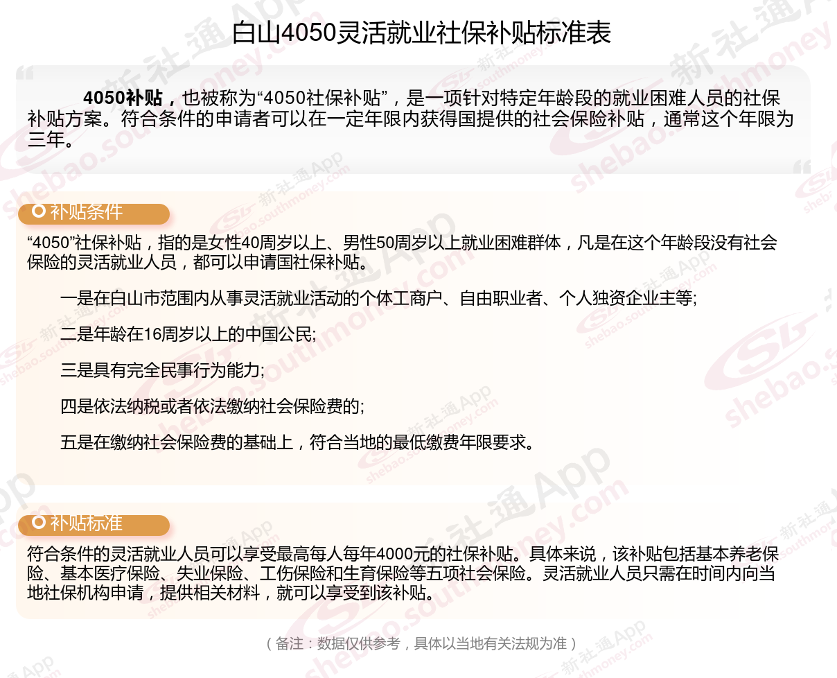 一、2023-2024年白山灵活就业4050社保补贴标准和条件是什么