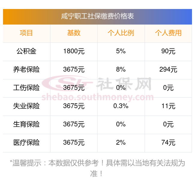 咸宁2025年社保缴费个人和公司各承担多少?咸宁五险一金每月最低交多少?下表是2025年咸宁社保费用明细参考,新社通app-社保缴费查询工具提供的最新数据如下: