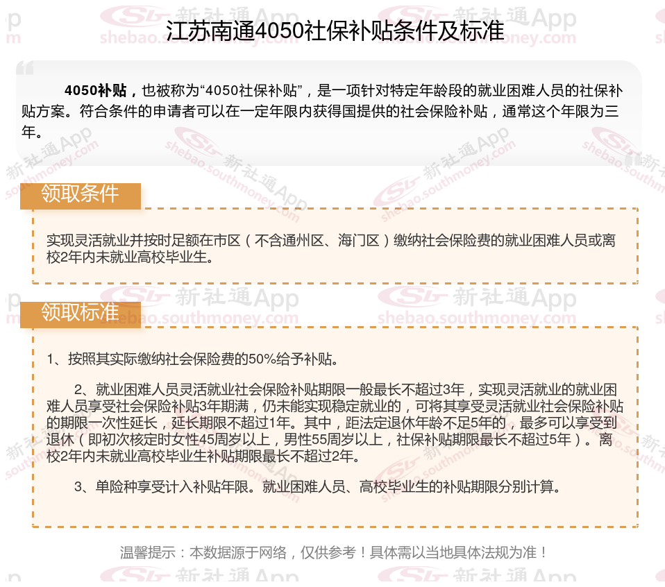 一、2025年江苏南通4050社保补贴标准是怎么样的?江苏南通4050一年可拿多少钱?