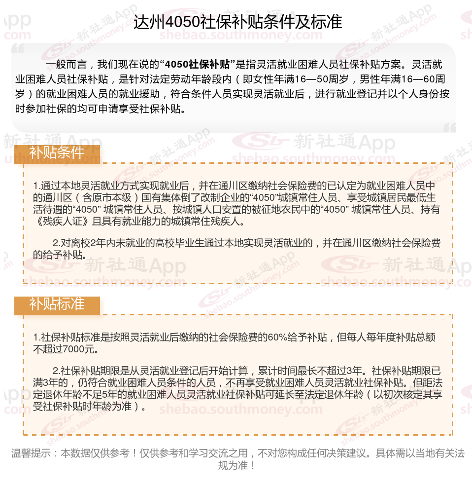二、达州4050社保补贴标准及条件4050社保补贴,最新如下
