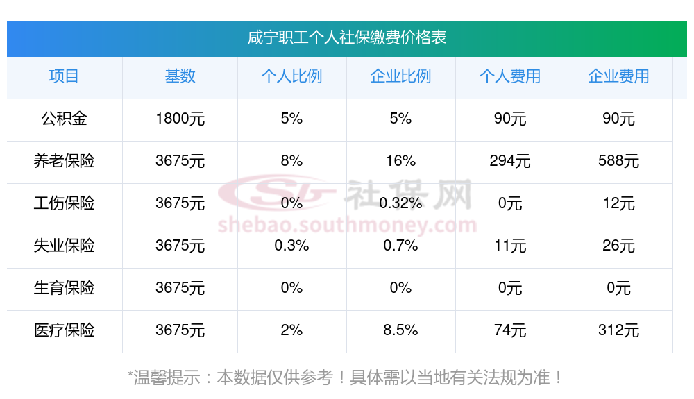 2025年咸宁社保缴费价格,2025年咸宁社保缴费多少钱?下表是2025年咸宁社保费用明细参考,新社通app-社保缴费查询工具提供的最新数据如下: