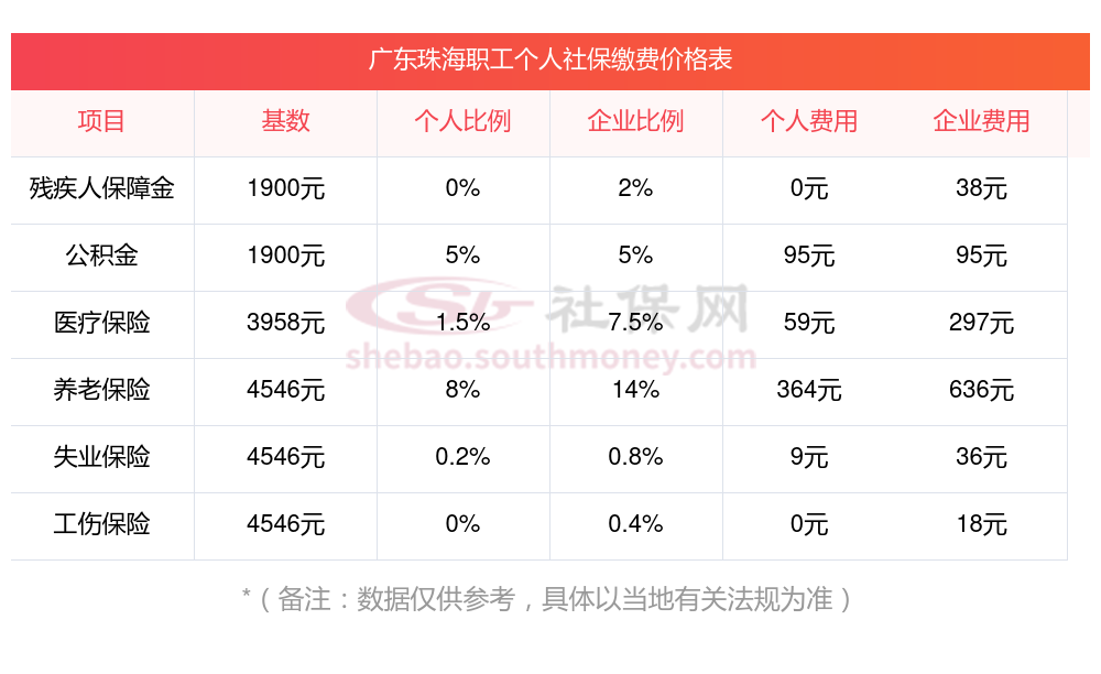 2025年广东珠海5险缴费标准是多少,2025年广东珠海社保缴费多少钱?下表是2025年广东珠海社保费用明细参考,新社通app-社保缴费查询工具提供的最新数据如下:
