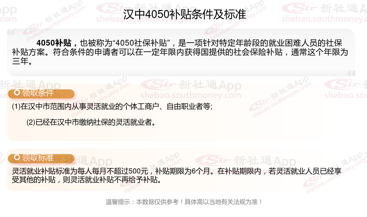 以上就是汉中4050灵活就业社保补贴的相关内容,欢迎关注新社通/下载新社通APP了解更多五险一金专业资讯。