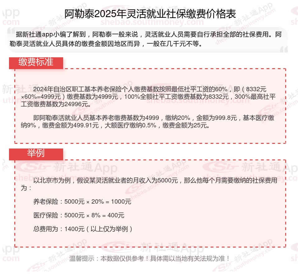 以上就是阿勒泰灵活就业社保缴费的全部内容,数据及内容供参考!希望对你有帮助,欢迎关注新社通解锁更多社保专业资讯。