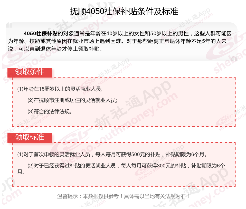 一、2025年抚顺4050社保补贴标准及条件是多少?