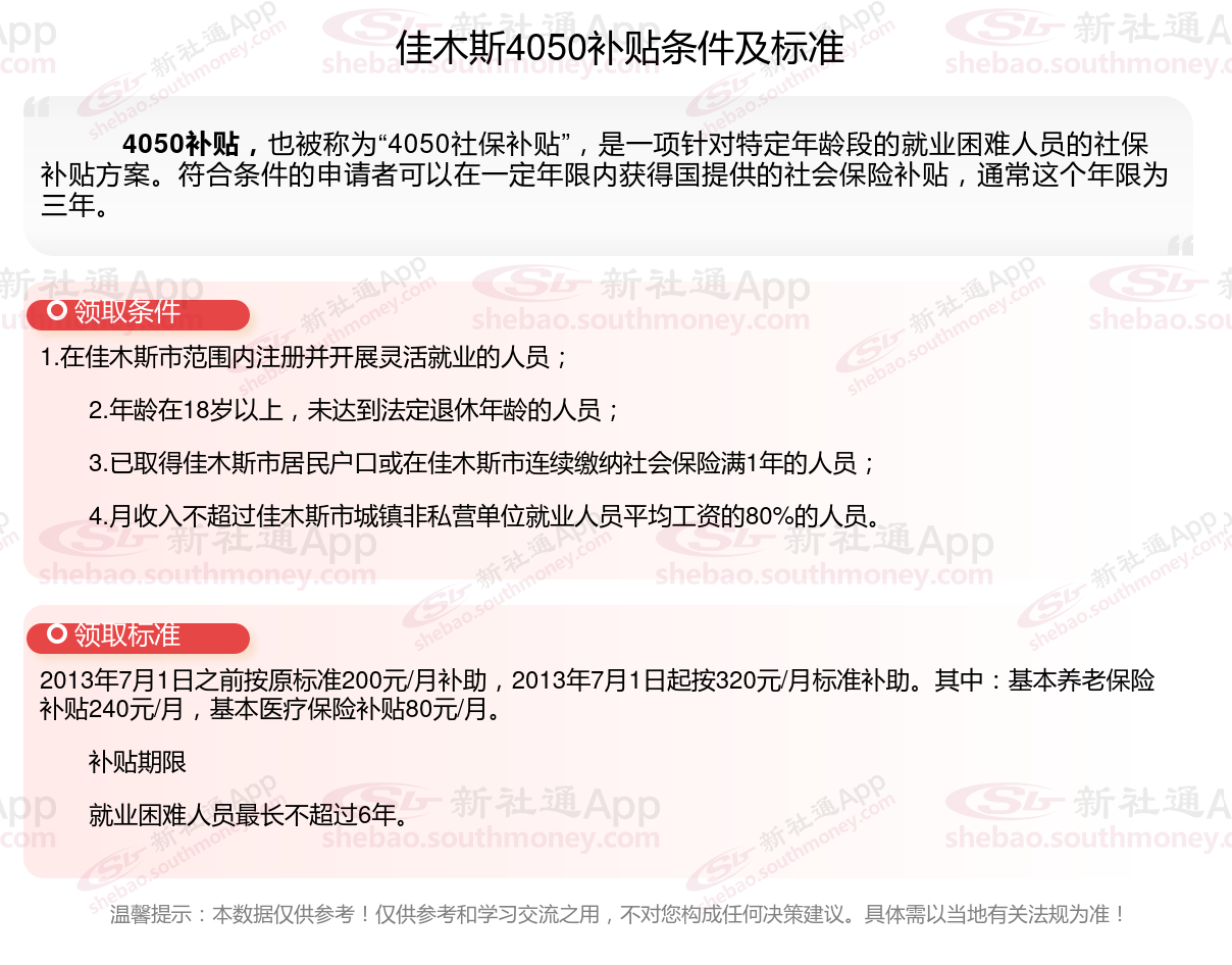 2025佳木斯4050补贴主要针对的是年龄在40岁以上的女性和50岁以上的男性,这些人群通常因为年龄较大而面临就业困难。