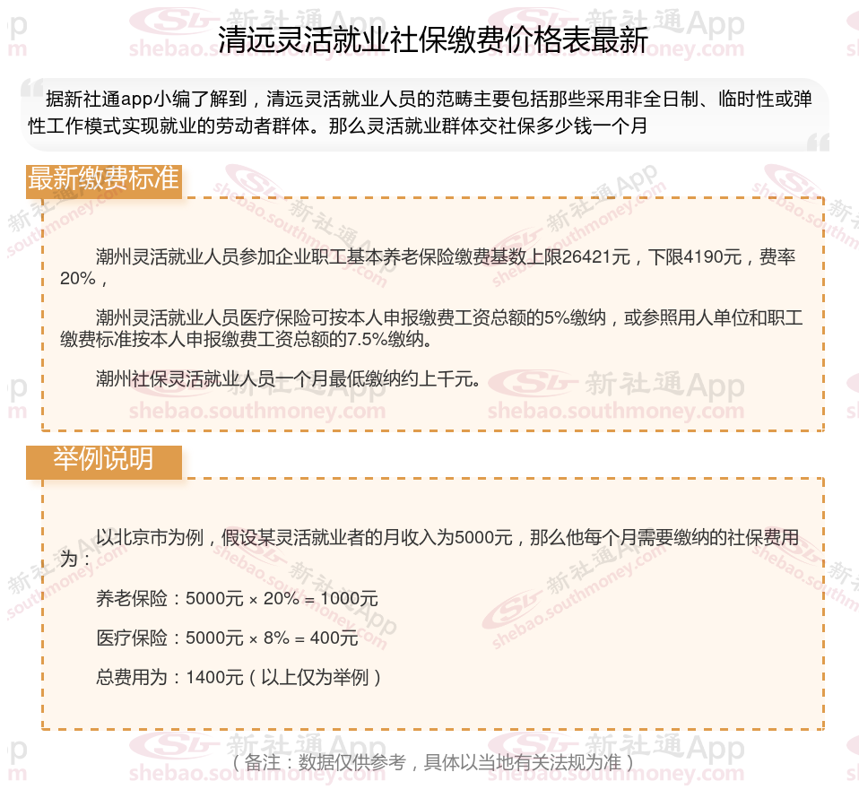 潮州社保灵活就业人员一个月最低缴纳约上千元。