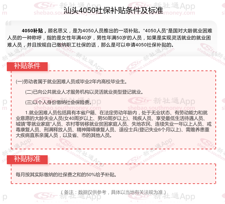 2025汕头灵活就业4050社保补贴是一项面向特定年龄段的就业困难人群的社会保险补贴。