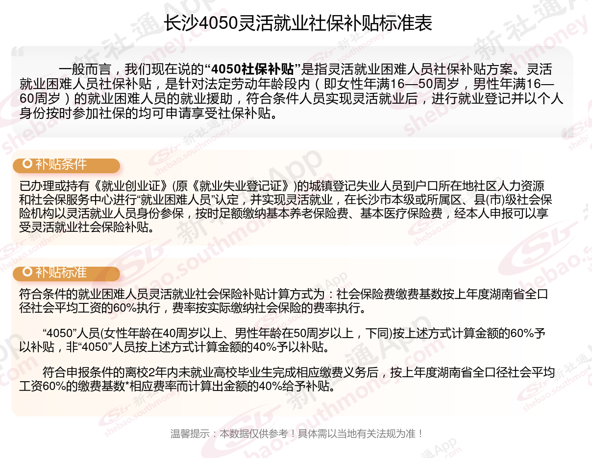 一、长沙灵活就业人员4050补贴最新标准2025年,长沙4050灵活就业人员养老补贴一年可以有多少钱?