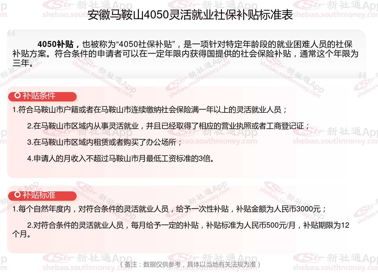 以上就是安徽马鞍山4050灵活就业社保补贴的相关内容,欢迎关注新社通/下载新社通APP了解更多五险一金专业资讯。
