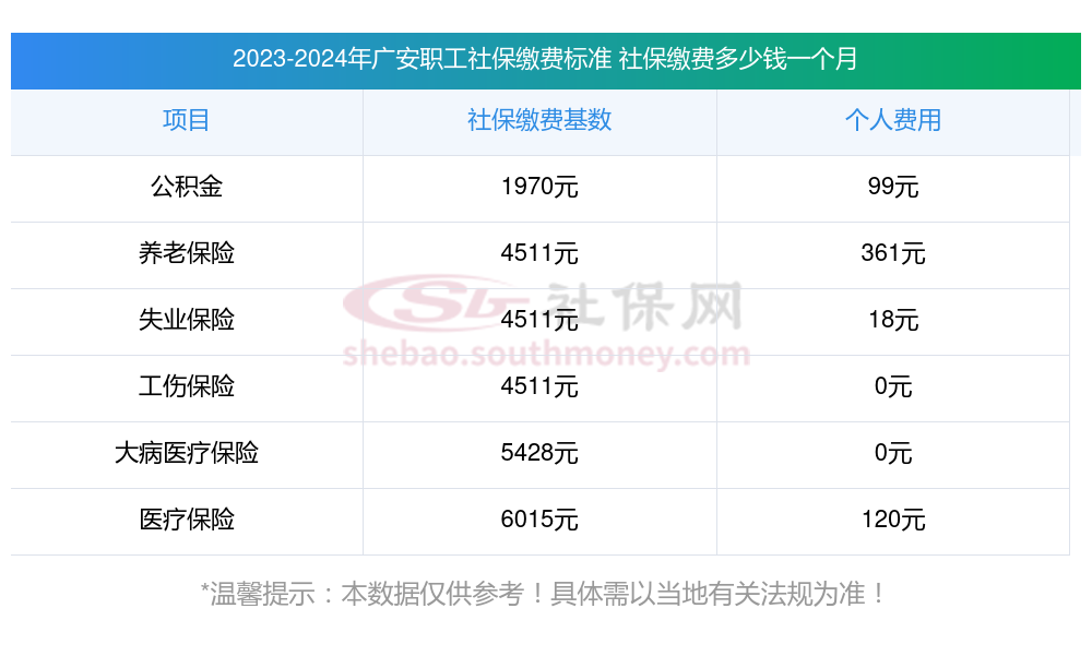 2025年广安五险缴费标准是多少,2025年广安社保缴费多少钱?下表是2025年广安社保费用明细参考,新社通app-社保缴费查询工具提供的最新数据如下: