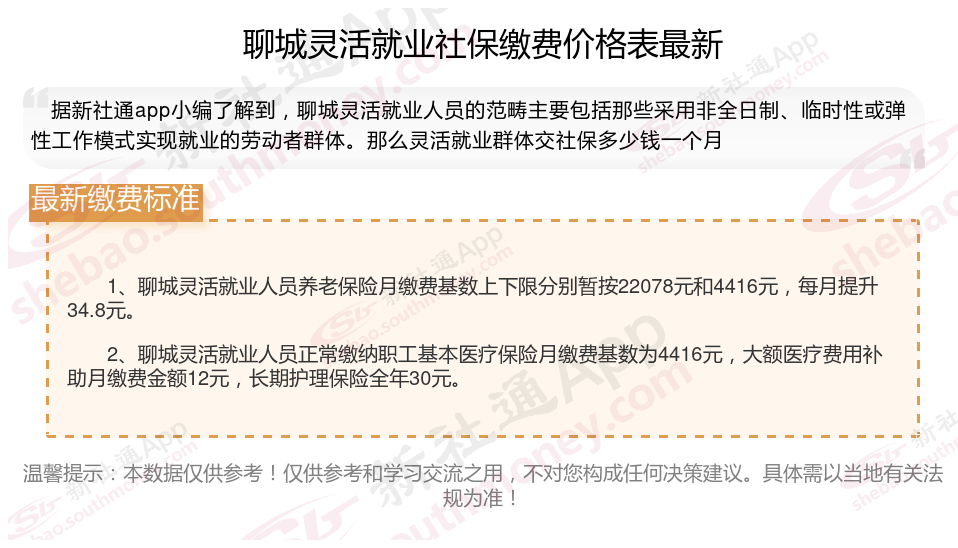 那么,打工人社保是多少钱一个月 聊城灵活社保交多少钱?根据新社通app-社保缴费查询工具提供的2025社保缴费标准详情数据: