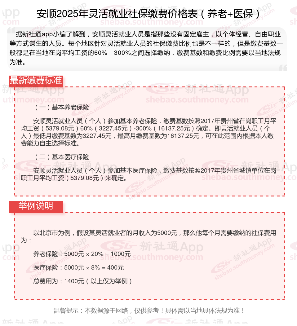 以上就是安顺灵活就业社保缴费的全部内容,数据及内容供参考!希望对你有帮助,欢迎关注新社通解锁更多社保专业资讯。