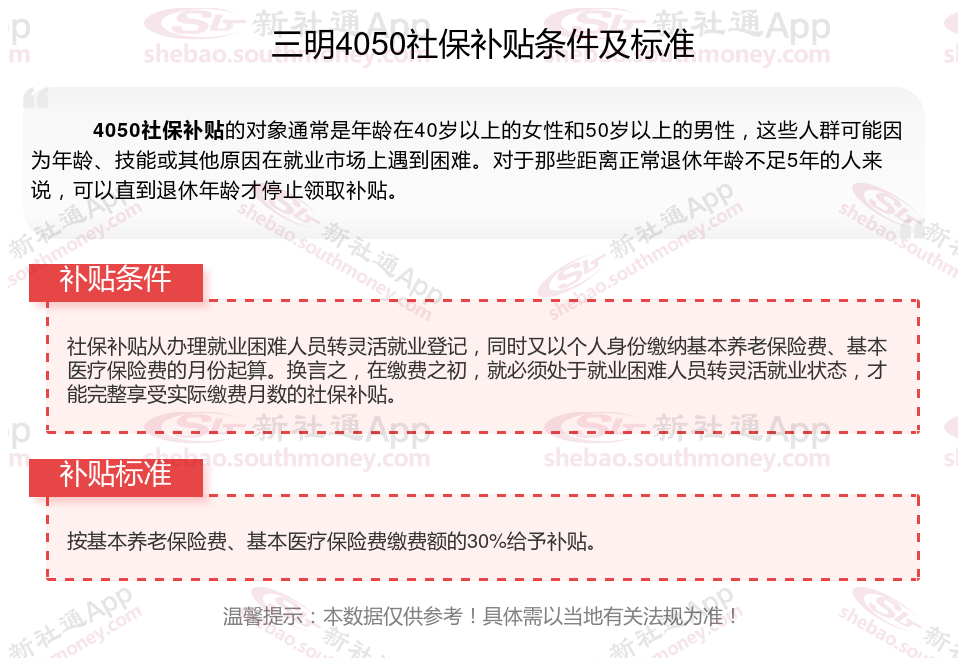 以上就是三明4050灵活就业社保补贴的相关内容,欢迎关注新社通/下载新社通APP了解更多五险一金专业资讯。