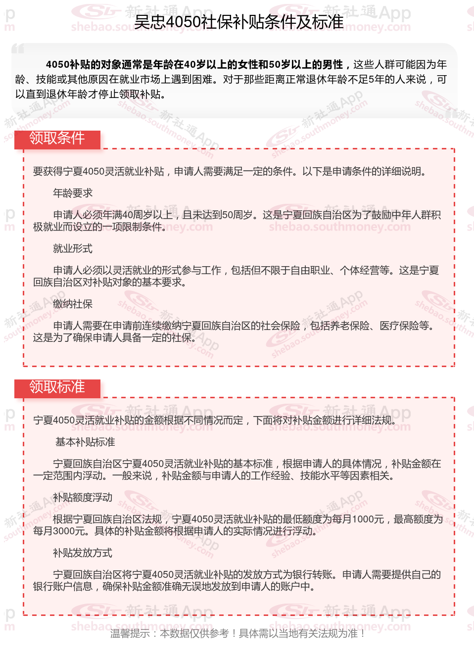 一、2023-2024年吴忠灵活就业4050社保补贴标准和条件是什么