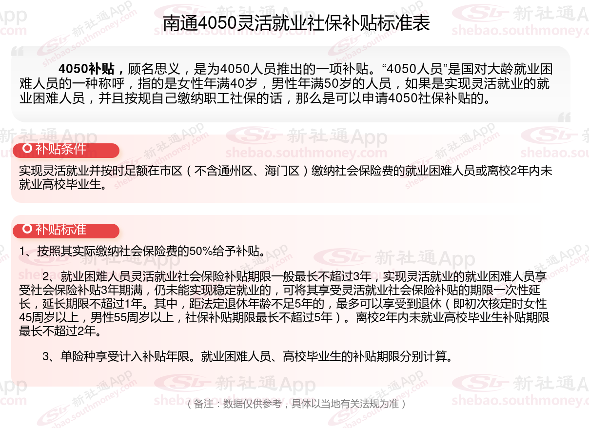 二、南通4050社保补贴标准及条件2025年最新消息