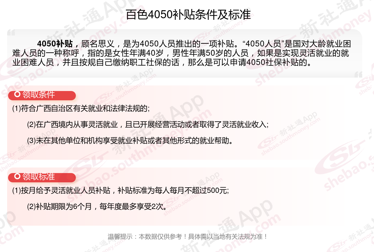 2025百色灵活就业4050社保补贴是一项面向特定年龄段的就业困难人群的社会保险补贴。