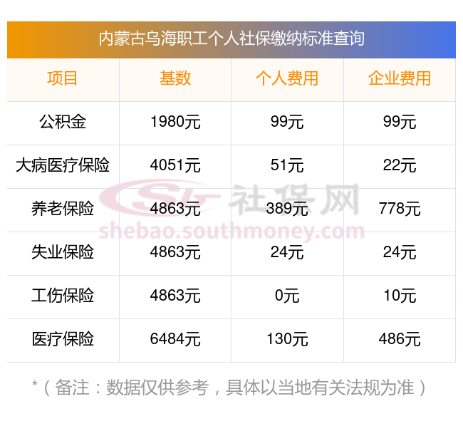 2025年内蒙古乌海社保缴费标准是多少,农村社保要交多少年才不交 下表是2025年内蒙古乌海社保费用明细参考,新社通app-社保缴费查询工具提供的最新数据如下: