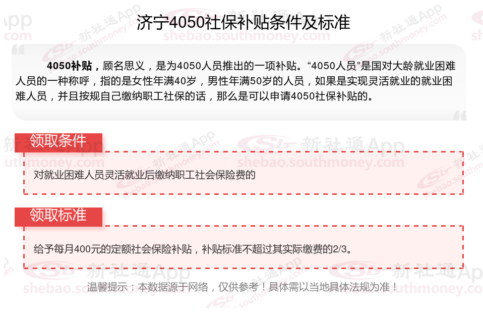 二、2025年济宁4050社保补贴标准及条件,最新如下: