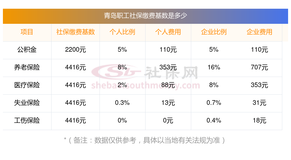 2025年青岛五险缴费标准是多少,2025年青岛社保缴费多少钱?下表是2025年青岛社保费用明细参考,新社通app-社保缴费查询工具提供的最新数据如下:
