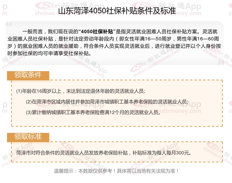 以上就是山东菏泽4050灵活就业社保补贴的相关内容,欢迎关注新社通/下载新社通APP了解更多五险一金专业资讯。