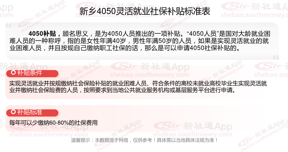 以上就是新乡4050灵活就业社保补贴的相关内容,欢迎关注新社通/下载新社通APP了解更多五险一金专业资讯。